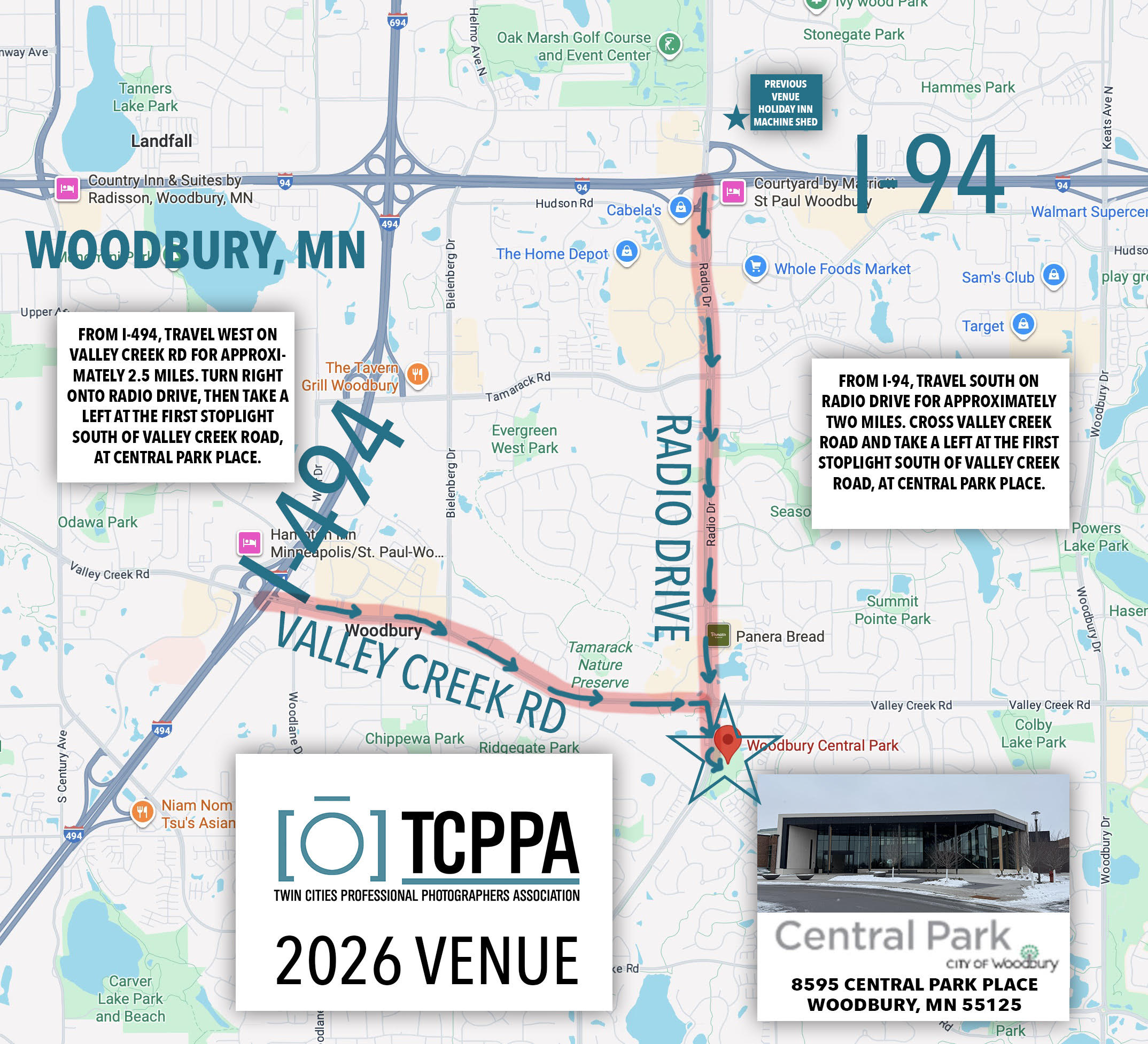 All regular scheduled TCPPA monthly events will be held at Woodbury Central Park, a brand-new state-of-the-art facility that is perfect for our photo community to gather.